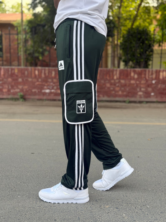 Premium Green Three Tapes Men's 4 way Stretch-able Lycra Oval Pocket Cargo Trousers