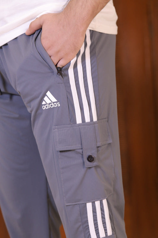Premium Gray Three Tapes Men's 4 way Stretch-able Lycra Cargo Trouser