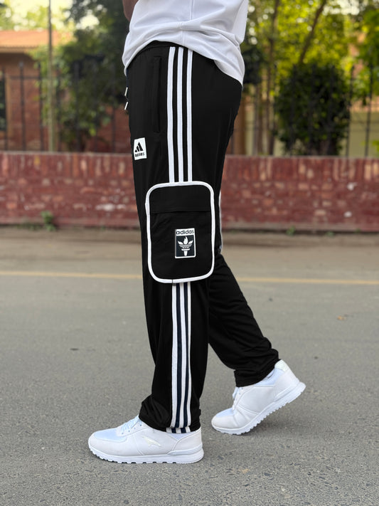 Premium Black Three Tapes Men's 4 way Stretch-able Lycra Cargo Trouser