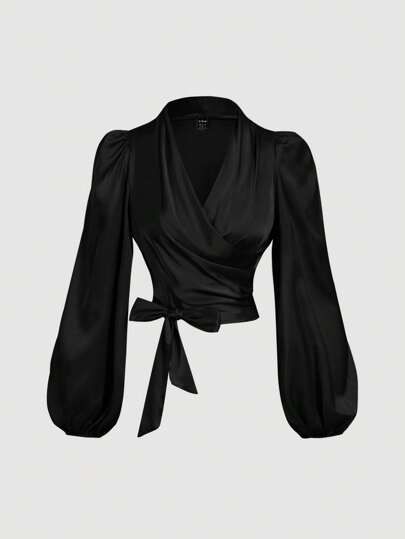 Elegant Wrap Style Satin Ladies Top – Office & Casual Wear Blouse