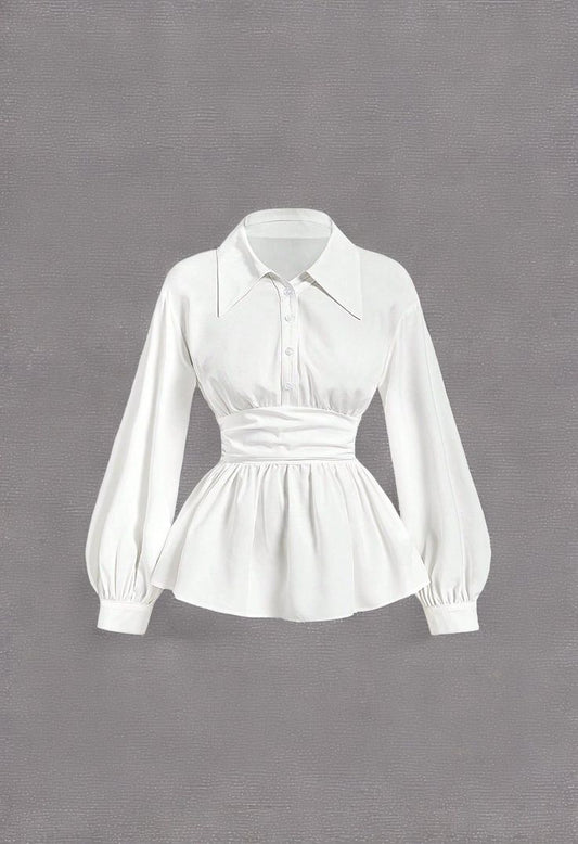 Women's Elegant Peplum Blouse – Long Sleeve Button Shirt
