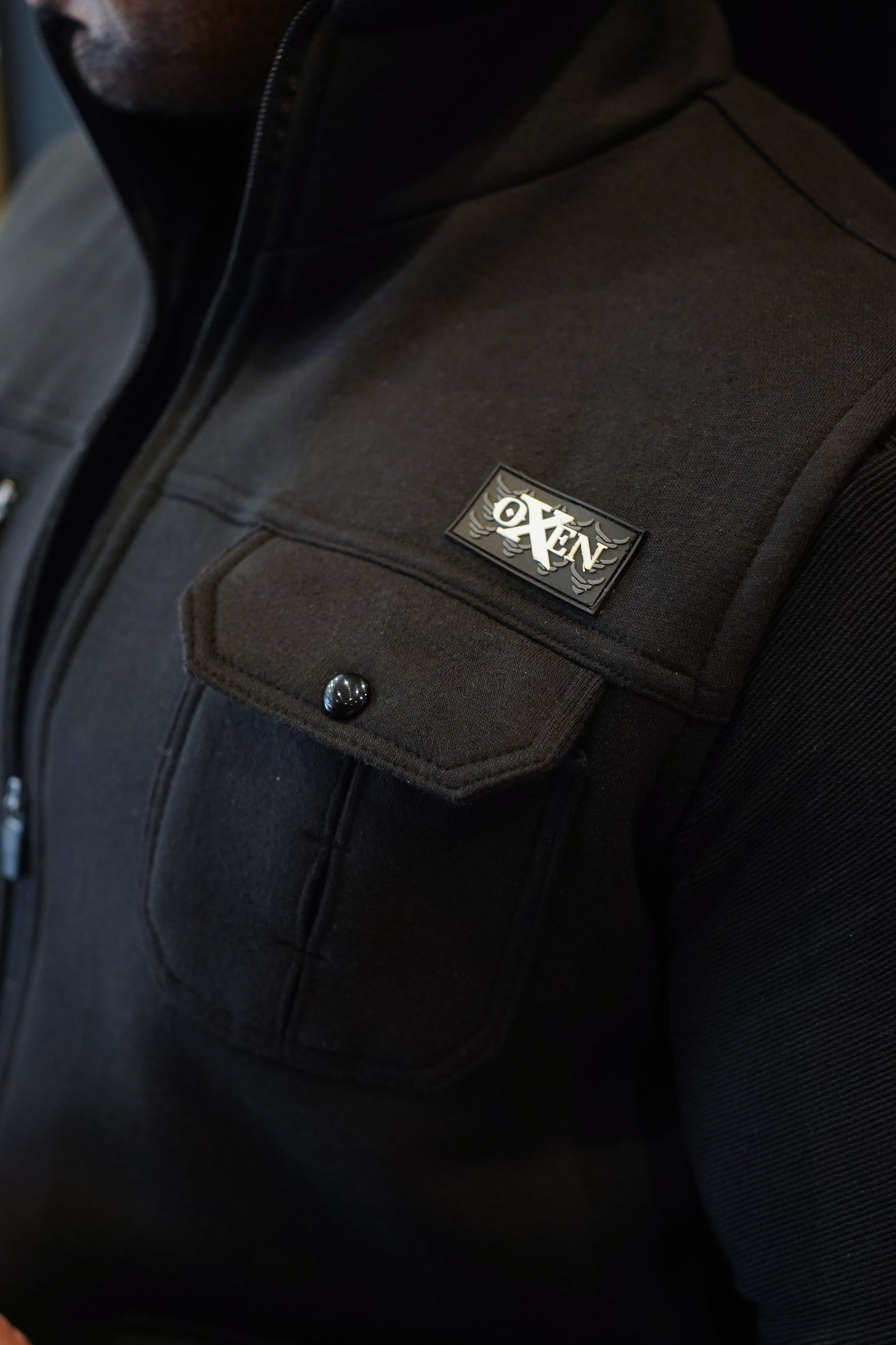 Premium Cotton Fleece Four Pocket sleeveless Jacket Black Jkt-01