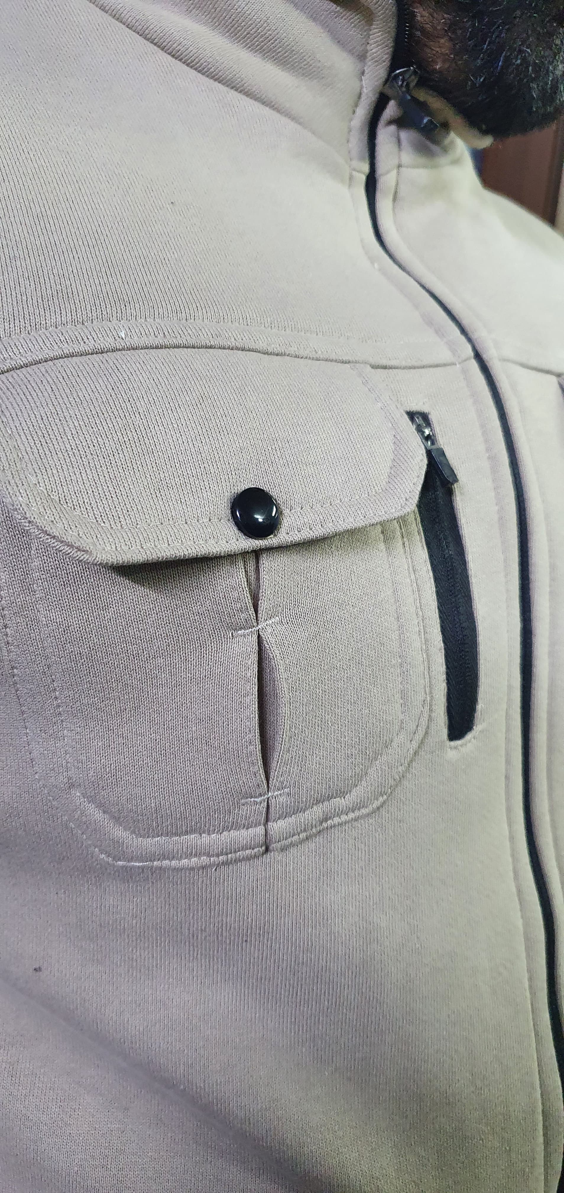 Premium Cotton Fleece Four Pocket sleeveless Jacket Beige 12