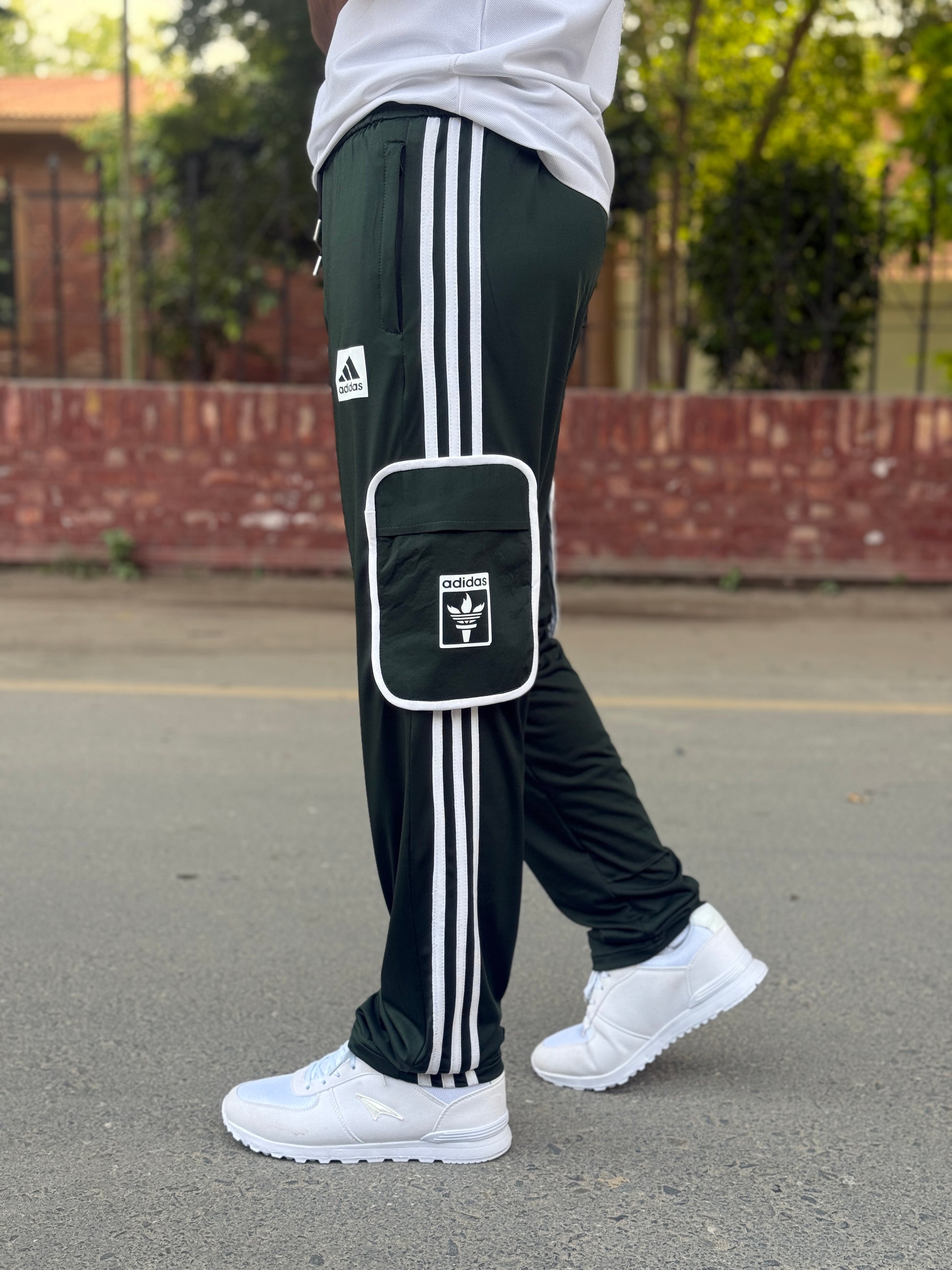 Premium Green Three Tapes Men's 4 way Stretch-able Lycra Oval Pocket Cargo Trousers